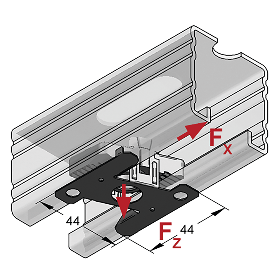 | Typ szyny | Profil C 45 mm z ząbkami wew. |