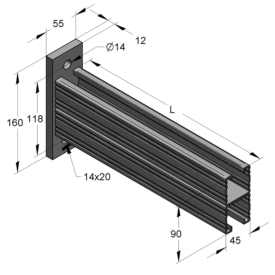 | Wymiary szyny profilowej | 45 x 90 x 2,0 mm |